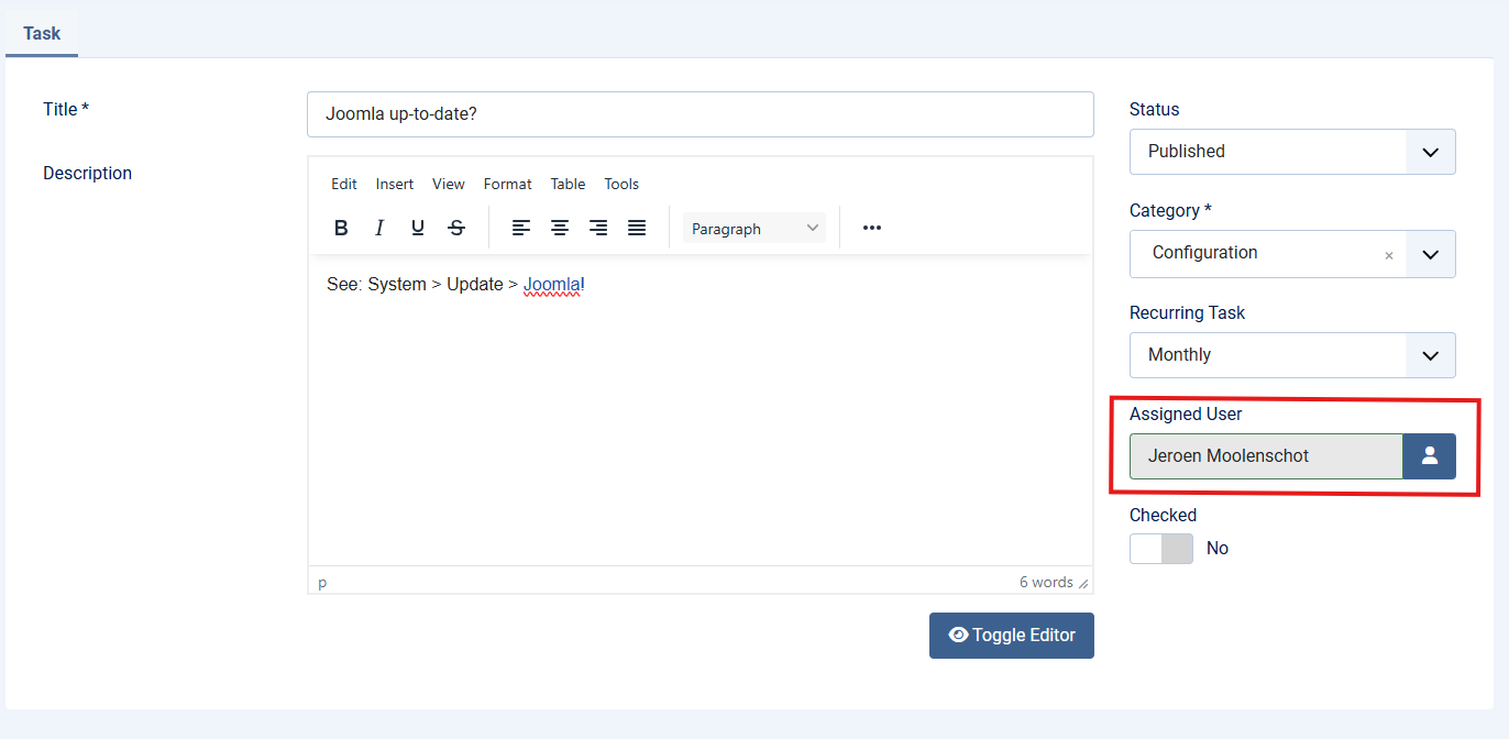 The Joomill Admin Checklist – Assigned To plugin makes team collaboration inside Joomla a breeze by letting you filter checklist items based on the assigned user. Whether you’re managing content updates, site maintenance, or daily tasks, this feature ensures every team member sees exactly what’s relevant to them. Clear task ownership, less confusion, and a smoother workflow all in one simple extension.