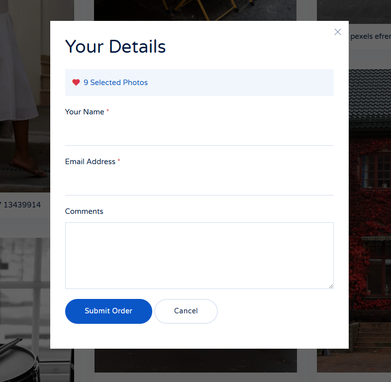 Say goodbye to confusing email threads and handwritten lists of filenames. Your clients can easily curate their perfect collection by simply clicking the 'heart' icon on the photos they love. It’s an intuitive experience they already know from social media. Once they are happy with their choices, a single click on the 'Submit' button finalizes the process. The system instantly sends a clear, detailed confirmation email to both you and your client, ensuring everyone is on the same page.