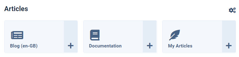 Links to all articles from your selected categories / languages / authors and have a button to directly add a new article to the category. You can also select the "Current User" to show a link to "My Articles".