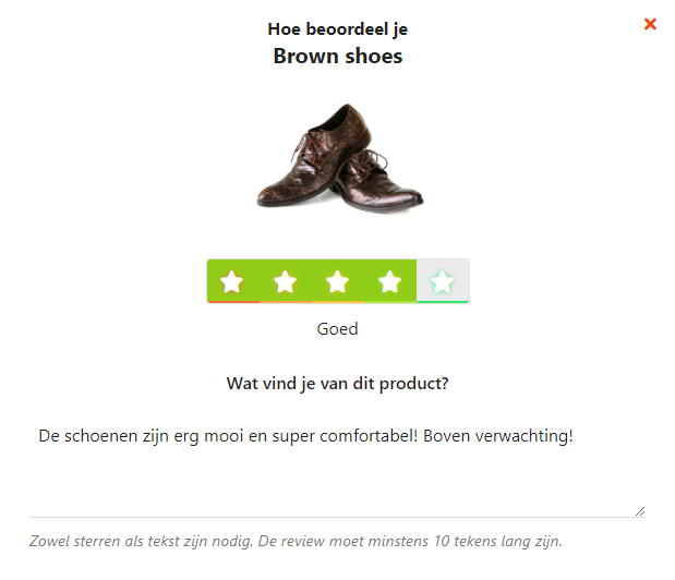 Eenmaal geactiveerd, kun je beginnen met het verzamelen van product reviews! Je klanten krijgen dan binnen hun reguliere reviewuitnodiging ook de kans om de bestelde producten te beoordelen.